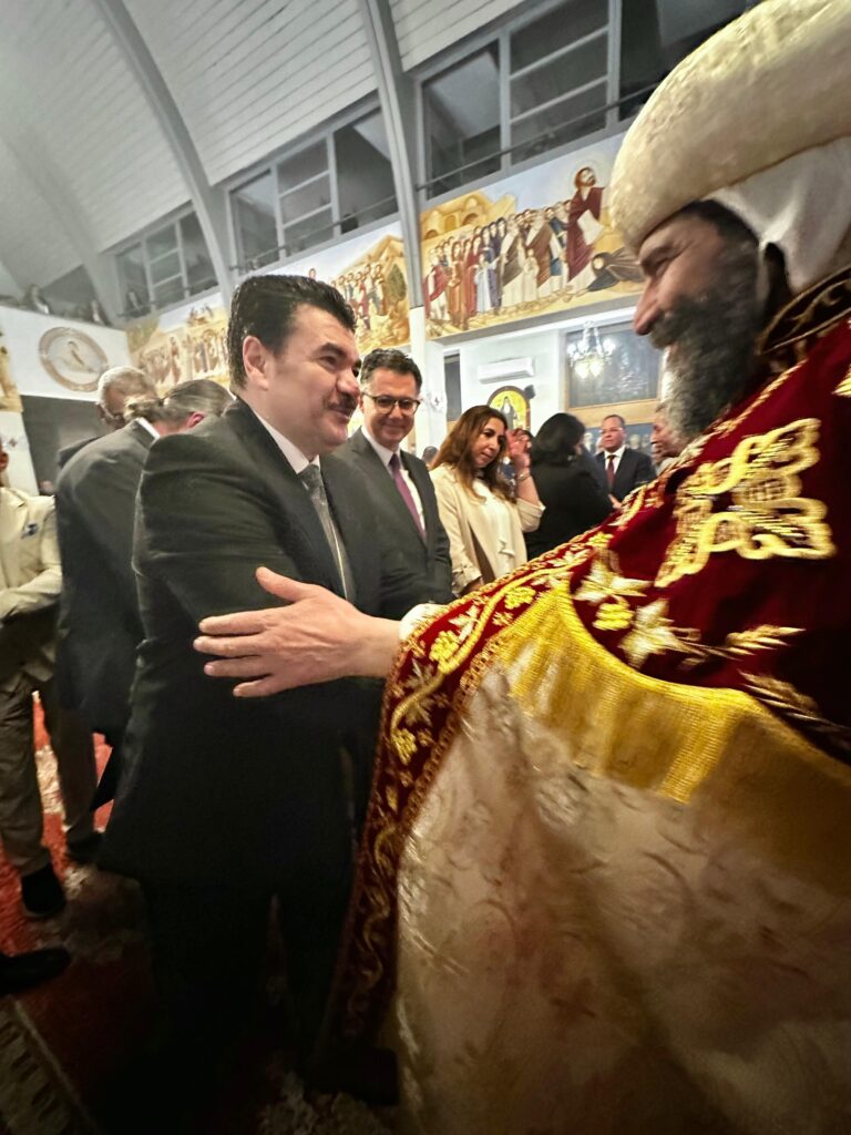 وقد تشرفت السفارة المصرية والمكتب المكتب الثقافي المصري بالمشاركة في احتفالات عيد القيامة المجيد التي أُقيمت في كنيسة عذراء الزيتون بفيينا، بحضور سعادة السفير محمد نصر، سفير جمهورية مصر العربية لدى النمسا ومندوبها الدائم لدى الأمم المتحدة والمنظمات الدولية، وحرمه الكريم، ونائب السفير الدكتور خالد شعلان والمستشار محمد البحيري، القنصل العام لجمهورية مصر العربية والمستشار محمود الخطيب والمستشارة رضوي خليل من السفارة المصرية و الأستاذ محمد فاروق المترجم المعتمد لدي السفارة المصرية وبمشاركة بعض رموز الجالية المصرية المسلمة اخوانهم ، في مشهد يعكس وحدة الصف الوطني وتكامل الأدوار بين مؤسسات الدولة المصرية في الخارج.