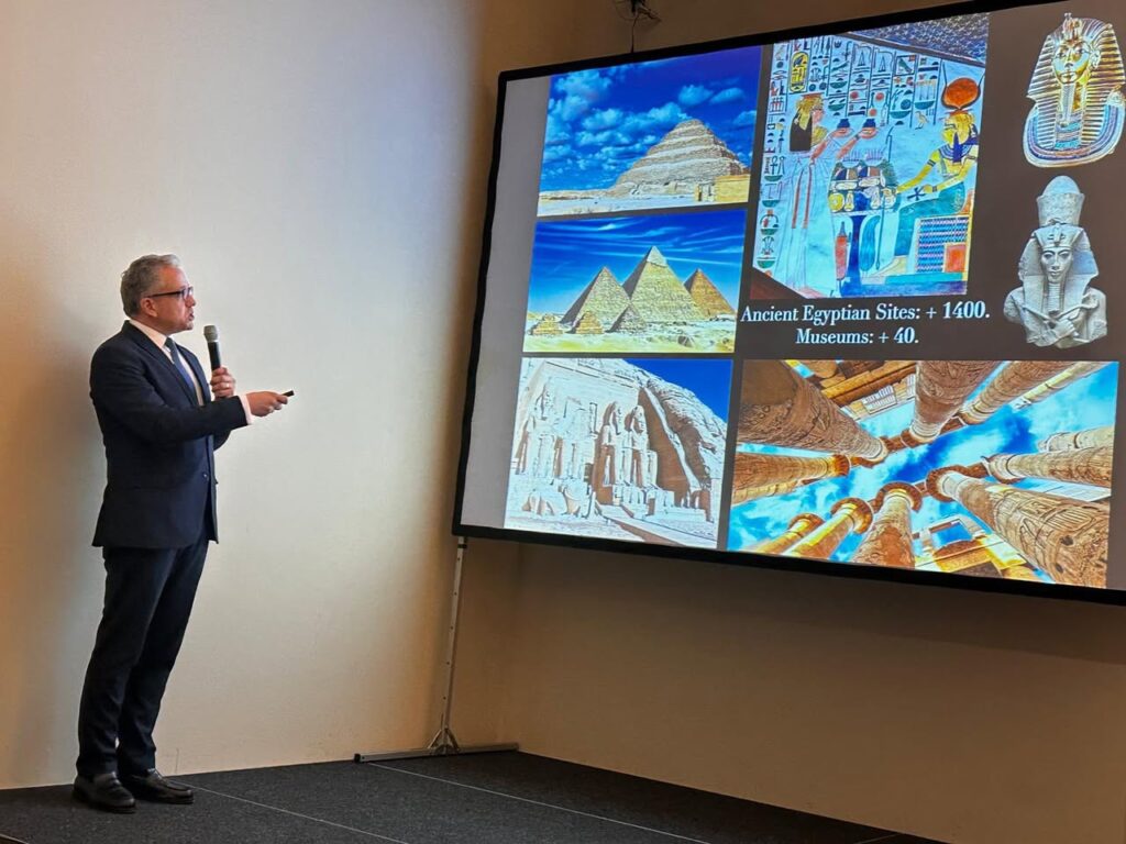 Unter der Schirmherrschaft Seiner Exzellenz Botschafter Mohamed Nasr, Botschafter der Arabischen Republik Ägypten und Ständiger Vertreter bei den Organisationen der Vereinten Nationen, wurde Professor Dr. Khaled El-Enany, Generaldirektor der UNESCO und ehemaliger Minister für Tourismus und Altertümer, in Zusammenarbeit mit der Ägyptischen Botschaft feierlich empfangen und begrüßt.