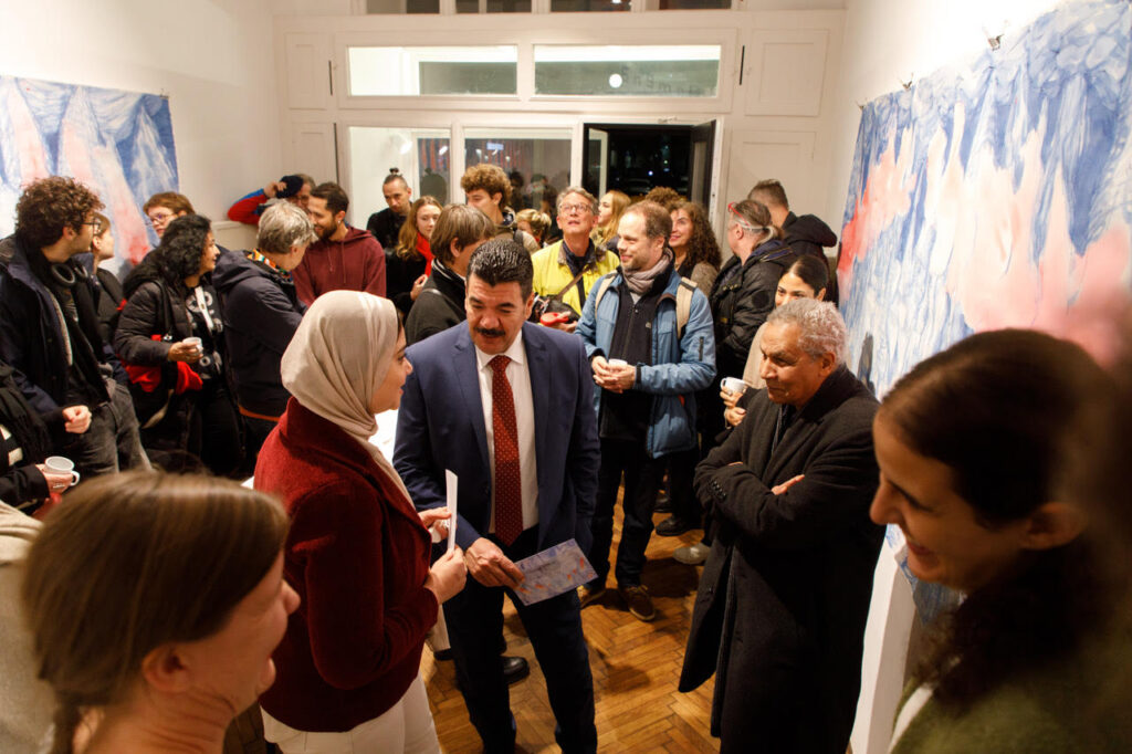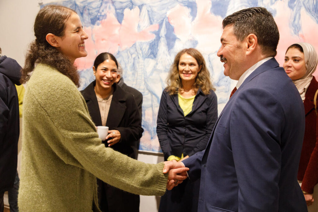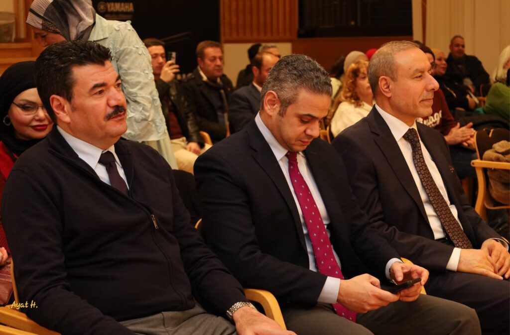 Eingeleitet wurde die Veranstaltung durch einen poetisch-musikalischen Moment, in dem eine der Stipendiatinnen ein Gedicht auf Arabisch und Herr El Aschrie diesen auf Deutsch vortrugen, das sich mit den Klängen der Musik erhob. Dieser Moment wurde symbolhaft für die Begegnung zwischen Jugend und Kreativität, zwischen dem Individuum und dem kollektiven Gedanken, zwischen Traum und Kunst.