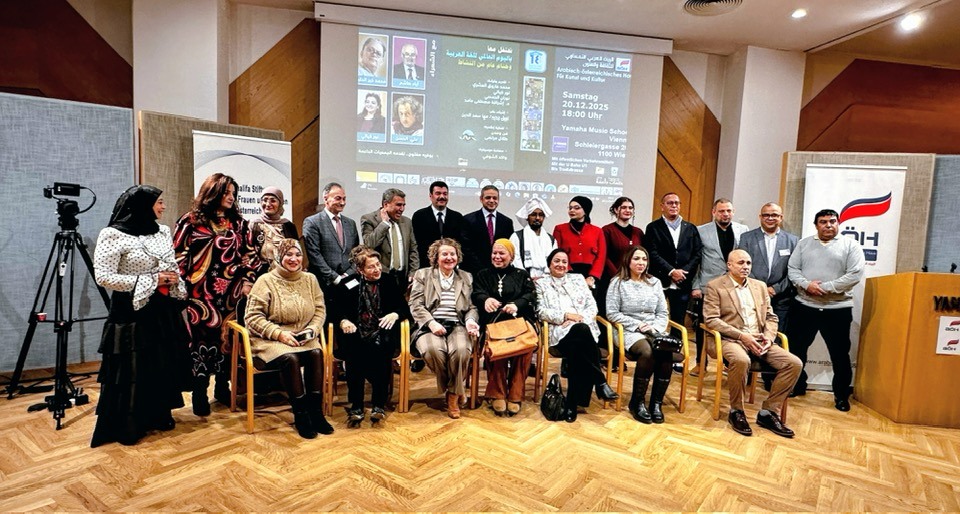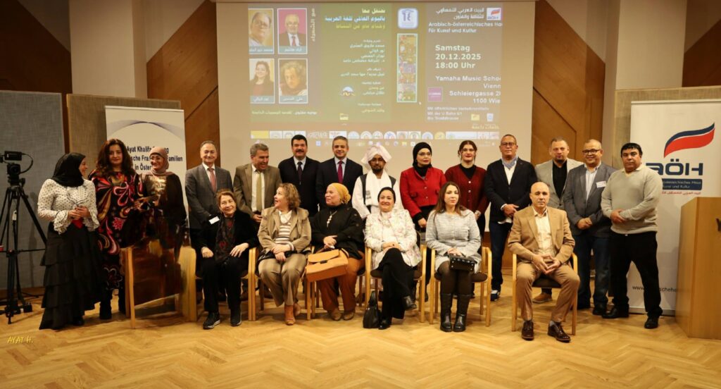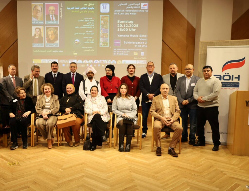وأكد الكاتب الصحفي محمد عزّام، رئيس البيت العربي النمساوي للثقافة والفنون، أن الاحتفال باليوم العالمي للغة العربية ليس مناسبةً شكلية، بل هو موقف ثقافي واعٍ، ورسالة حضارية تؤمن بأن اللغة العربية كائن حيّ، لا يعيش بالحفظ وحده، بل بالإبداع والتجدد والانفتاح على الآخر. وأوضح أن البيت العربي النمساوي يسعى لأن يكون جسرًا ثقافيًا بين العرب وأوروبا، ومنصةً تلتقي فيها الدبلوماسية بالثقافة، والفن بالفكر، والتراث بالحداثة. واكد أيضا في كلمته ان اللغة العربية، بما تحمله من عمق فلسفي وجمالي، قادرة على تقديم صورة حضارية مشرقة عن الإنسان العربي في الغرب، وعلى فتح مساحات للحوار والتفاهم الإنساني.