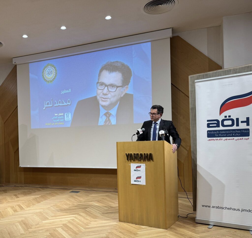 Professor Dr. Khaled Aboshanab, Direktor des Ägyptischen Kulturbüros in Wien, dankt dem Journalisten Mohamed Azzam, Präsident des Österreichisch-Arabischen Hauses für Kultur und Kunst, herzlich für die freundliche Einladung und Teilnahme an der jährlichen Feier zum 52. Welttag der arabischen Sprache in Wien. Die Zeremonie wurde von Seiner Exzellenz Botschafter Mohamed Nasr eröffnet. Der Botschafter der Arabischen Republik Ägypten in Österreich und Ständiger Vertreter bei den Vereinten Nationen und internationalen Organisationen in Wien sowie derzeitiger Vorsitzender des Rates der Arabischen Botschafter bekräftigte, dass die arabische Sprache niemals bloß ein Kommunikationsmittel gewesen sei, sondern ein Gefäß menschlichen Denkens, ein Bewahrer der Identität und eine zivilisatorische Brücke zwischen Völkern und Kulturen.