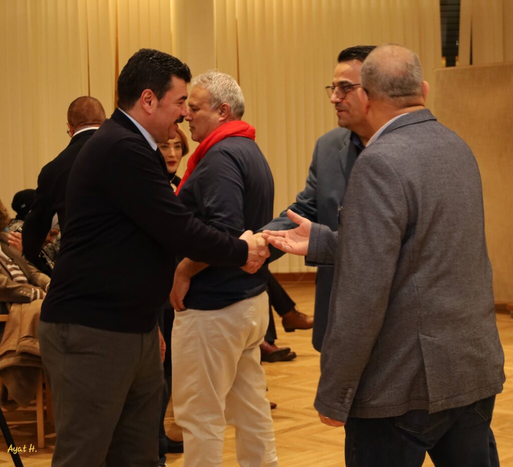 Prof. Dr. Khaled Abou Shanab betonte, dass dieser Abend den Beginn einer langen Reihe kultureller und intellektueller Veranstaltungen darstelle. Er betonte, dass Kultur die Kraft sei, die erleuchtete Köpfe forme, Horizonte für freies Denken öffne und die Saat des Bewusstseins in den Gesellschaften pflanze, sodass jedes Buch, jedes Wort und jede Diskussion ein Schritt hin zu einer Welt werde, die sich selbst und anderen gegenüber verständnisvoller und bewusster sei.