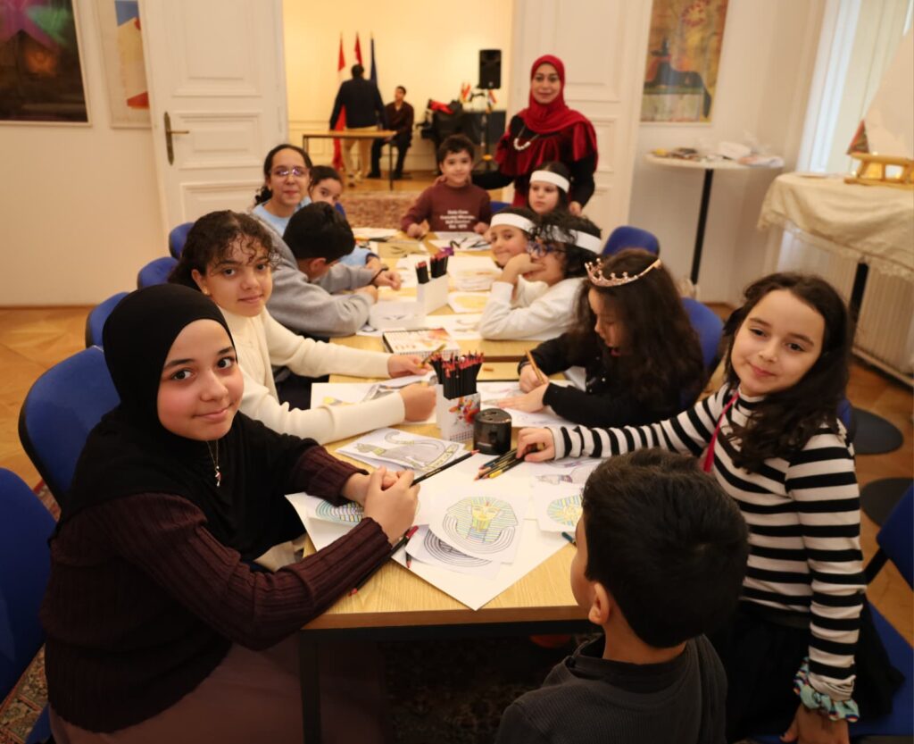 Unter der Schirmherrschaft von Prof. Dr. Ayman Ashour, Minister für Hochschulbildung und wissenschaftliche Forschung, und Prof. Dr. Ayman Farid, stellvertretender Minister für Hochschulbildung und Leiter der Abteilung für kulturelle Angelegenheiten und Stipendien, organisierte das ägyptische Kulturbüro in Wien eine kulturell-gesellschaftliche Veranstaltung. Das ägyptische Kulturbüro in Wien empfing am Donnerstag, dem 5. Februar 2026, eine Gruppe von Kindern der ägyptischen Gemeinde in Österreich unter dem Motto „Ein Tag der Liebe zu Ägypten“. Eine tragende Rolle in der Kulturarbeit des Büros und wichtiges Ziel der ägyptischen Auslandspolitik ist es, die nationale Zugehörigkeit der Kinder der ägyptischen Gemeinde in Österreich zu stärken und sie mit ihrer Heimat zu verbinden, sowie die modernen Errungenschaften Ägyptens zu vermitteln.