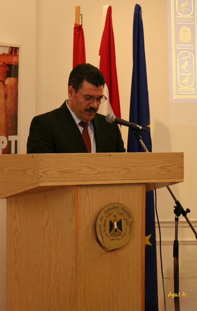 Die Veranstaltung stand unter der Schirmherrschaft von S.E. Botschafter Mohamed Nasr, Botschafter der Arabischen Republik Ägypten in Österreich und Ständiger Vertreter bei den Vereinten Nationen, sowie von Prof. Dr. Khaled Abou Shanab, Kulturattaché und Direktor des Ägyptischen Büros für Kultur- und Bildungsbeziehungen in Wien und Osteuropa. Letzterer betonte, dass Kultur die Brücke sei, die Vergangenheit und Gegenwart, das Individuum und die Gesellschaft, sowie den Menschen und die Zivilisation verbindet, sodass Ägypten stets im Herzen des menschlichen Bewusstseins präsent bleibe – nicht nur durch die Geographie, sondern durch Ideen, Kunst und Sprache.