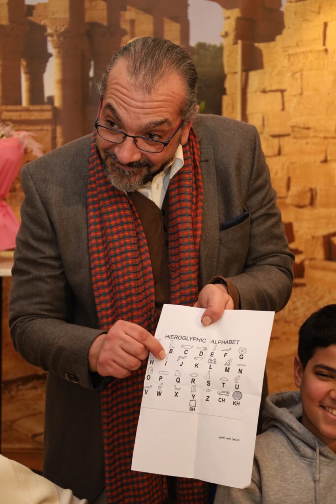 Auch hielt Herr Mohamed Farouk Al-Ashry, der bei der ägyptischen Botschaft in Österreich als vereidigter Übersetzer tätig ist, einen Vortrag für Kinder auf Deutsch über die alte ägyptische Zivilisation, die Hieroglyphenschrift und die Geschichte des Pyramidenbaus. Die Kinder erfuhren, wie die Pyramiden gebaut wurden, warum sie errichtet wurden und erhielten viele weitere nützliche Informationen durch die Nutzung einer neuen Lern-App sowie die Vorführung von Filmen, Spielen und verschiedenen anderen Lehrmaterialien.