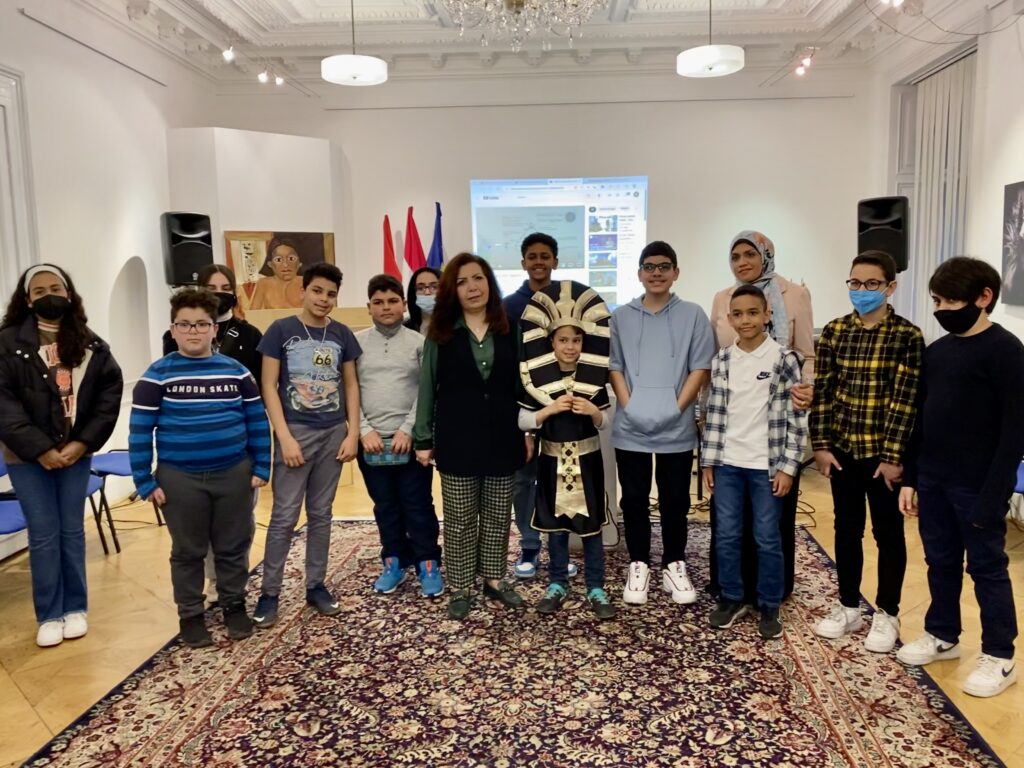 إستقبل المكتب الثقافي في فيينا يوم السبت الموافق 26 أبريل 2022 مجموعة من الأطفال أبناء الجالية المصرية بالنمسا تحت شعار “يوم في حب مصر”. يأتي هذا اللقاء في إطار الفعاليات التي ينظمها المكتب دعمًا لمبادرة “إتكلم عربي” بغرض تعريف أبناء المصريين المغتربين بحضارة بلادهم وحثهم على التحدث باللغة العربية.